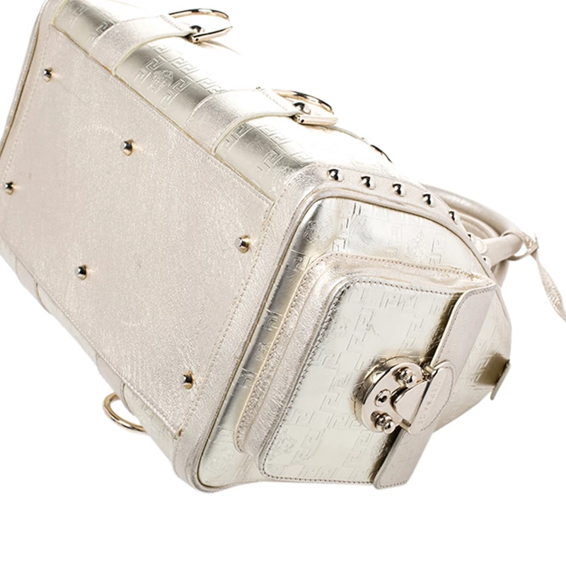 How gorgeous is this satchel from Versace! It carries an outstanding design and a fabulous interplay of leather and gold-tone hardware. It has a top leading to a fabric interior while being held by two top handles. The shape and the brand logo on the front just uplift its beauty and makes it a buy you will not regret.