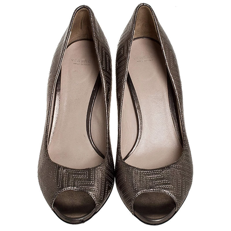 The right pair of shoes does not only make a woman look fabulous, but also gives her confidence. These Versace pumps, made from embroidered leather carry elegance and wonder in their design. They are accompanied by peep toes and 8 cm heels supported by platforms.
