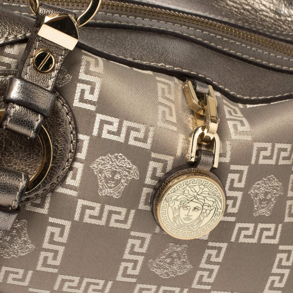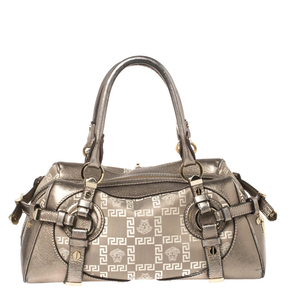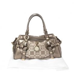 Sophisticated and luxe, this bag from Versace definitely needs to be on your wishlist. The bag is crafted from jacquard fabric & leather in a metallic grey shade and it features a structured silhouette. It flaunts dual handles and the famous Medusa logo on the front. The spacious satin interior has enough space for essentials.