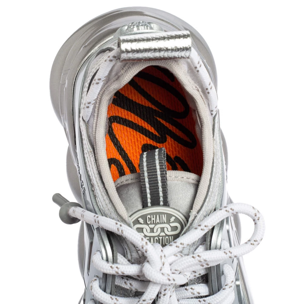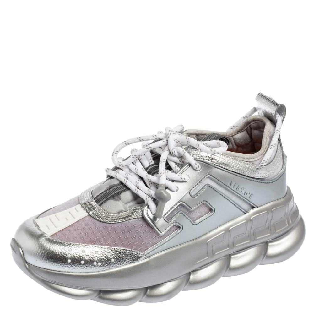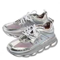 Versace’s Chain Reaction sneakers are for fashionable people like you and a stylish take on the chunky sneaker trend. These ones are crafted from high-grade materials in metallic grey. They feature laces, signature detailing, high platforms, and outsoles featuring a chain-like design.