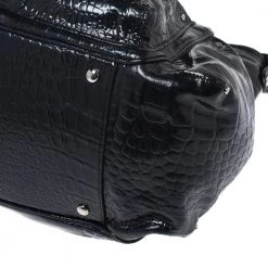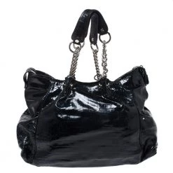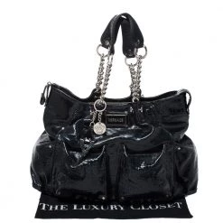 Designed to last, this beautiful tote from Versace is a prized buy. Comfortable and easy to carry, this croc-embossed patent leather creation comes in blue with a logo charm on the front. It has twin chain handles and an interior lined with satin to keep your essentials organized and safe.