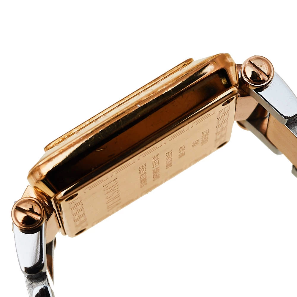 This Versace watch deserves to be added to your watch collection. Timeless and versatile, this watch can be worn for any occasion. It features a square mother of pearl dial and features two hands, markers, and the Medusa motif at 12 o’clock. This stunning piece is finished with a two-tone stainless steel chainlink bracelet. Make it a part of your everyday looks. (Note: The item may be restricted for shipping outside the UAE. Please contact us on [email protected] to check if the item can be shipped to your country.)