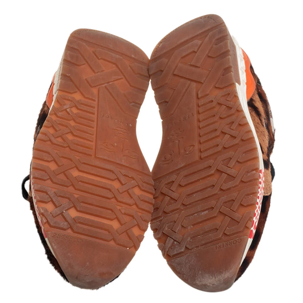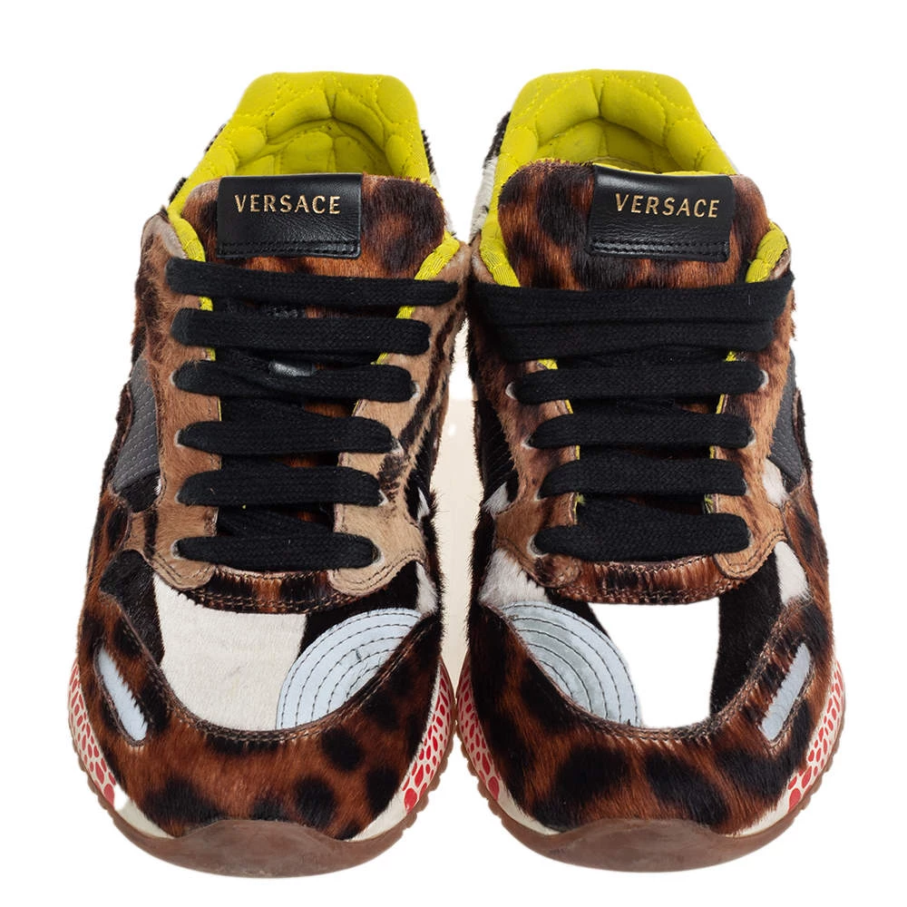 These sneakers by Versace are designed in a low-top profile using fur and leather. Finished with lace-ups, durable soles, and animal prints, this pair is high in comfort and style, just perfect to be worn by you.