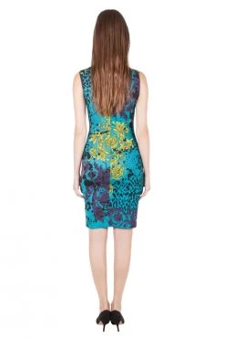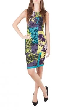 Designed with gold-tone Medusa zip trims, this pencil dress makes a remarkable statement. It is great to wear at work, parties or even casual outings. The multicolor sleeveless dress by Versace features baroque print. Team it with strappy flats and braided hairstyle.