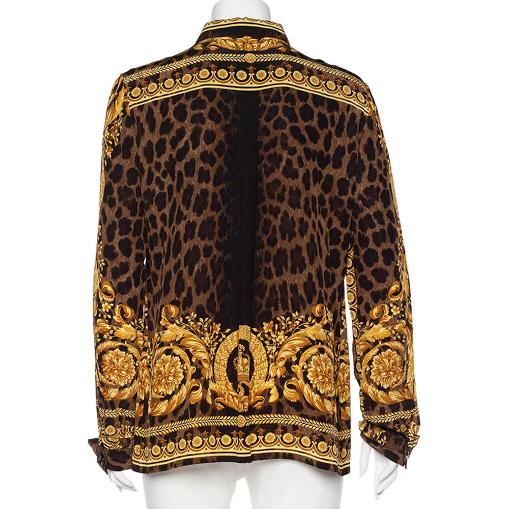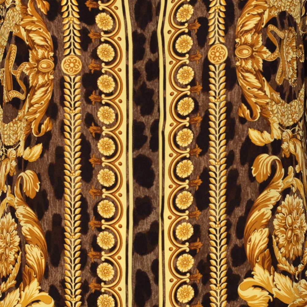 Designed with complete magnificence and signature elements, this skirt from Versace ensures that your collection remains mesmerizing. A multicolored Baroque print is seen all over the silk skirt. For achieving a balanced look, style this shirt with black pants and shoes.