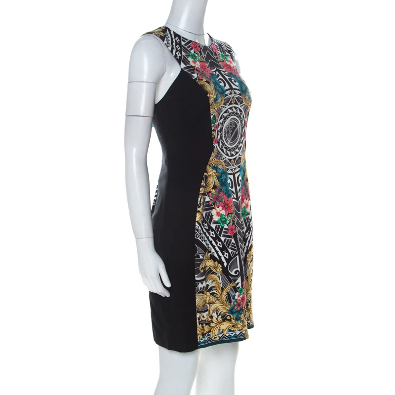 Versace brings you this fabulous sheath dress that has been designed with lovely details like colourful prints, a round neckline and a fitted shape. Team it with a pair of black sandals or pumps to look your best.