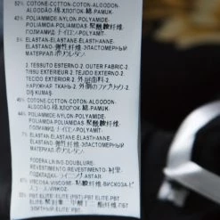 - Fabric: Fabric 1: 52% Cotton, 43% Nylon, 5% Elastane; Fabric 2: 49% Cotton, 44% Nylon, 7% Elastane; Lining: 67% Viscose, 33% Elite PBT