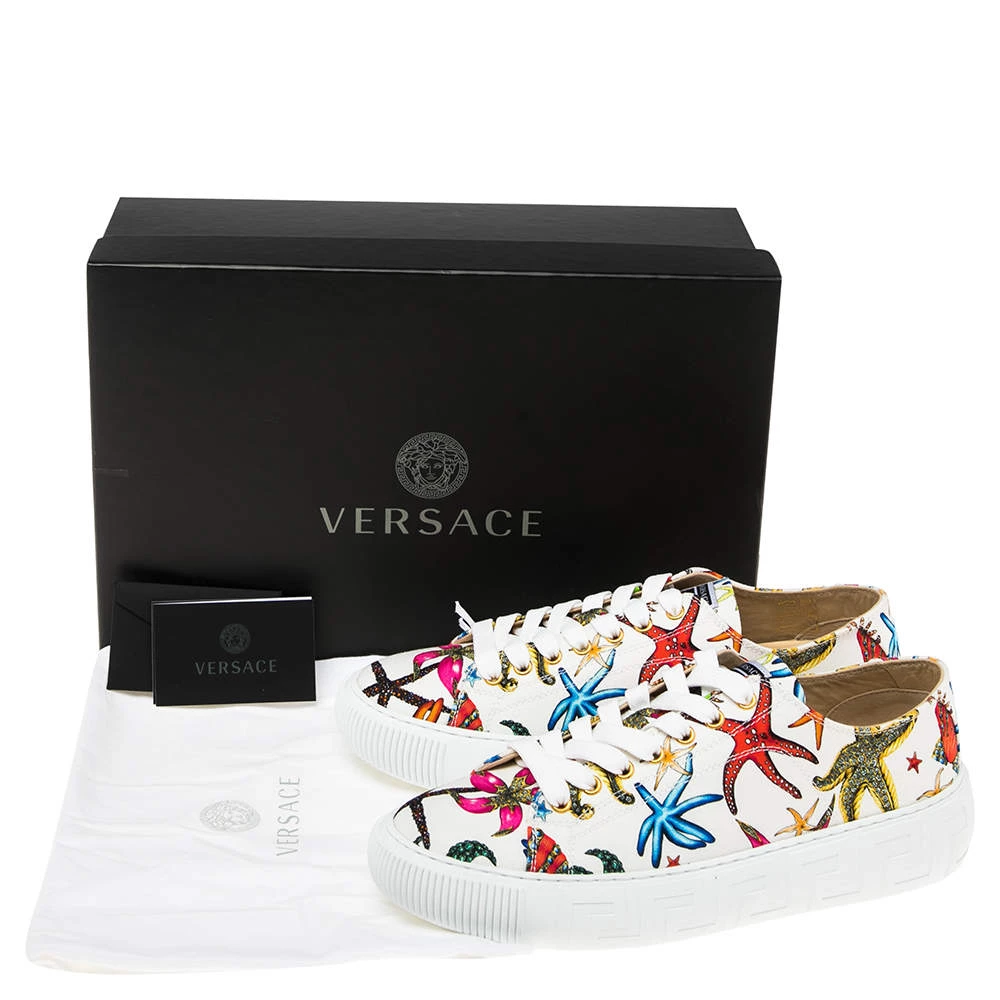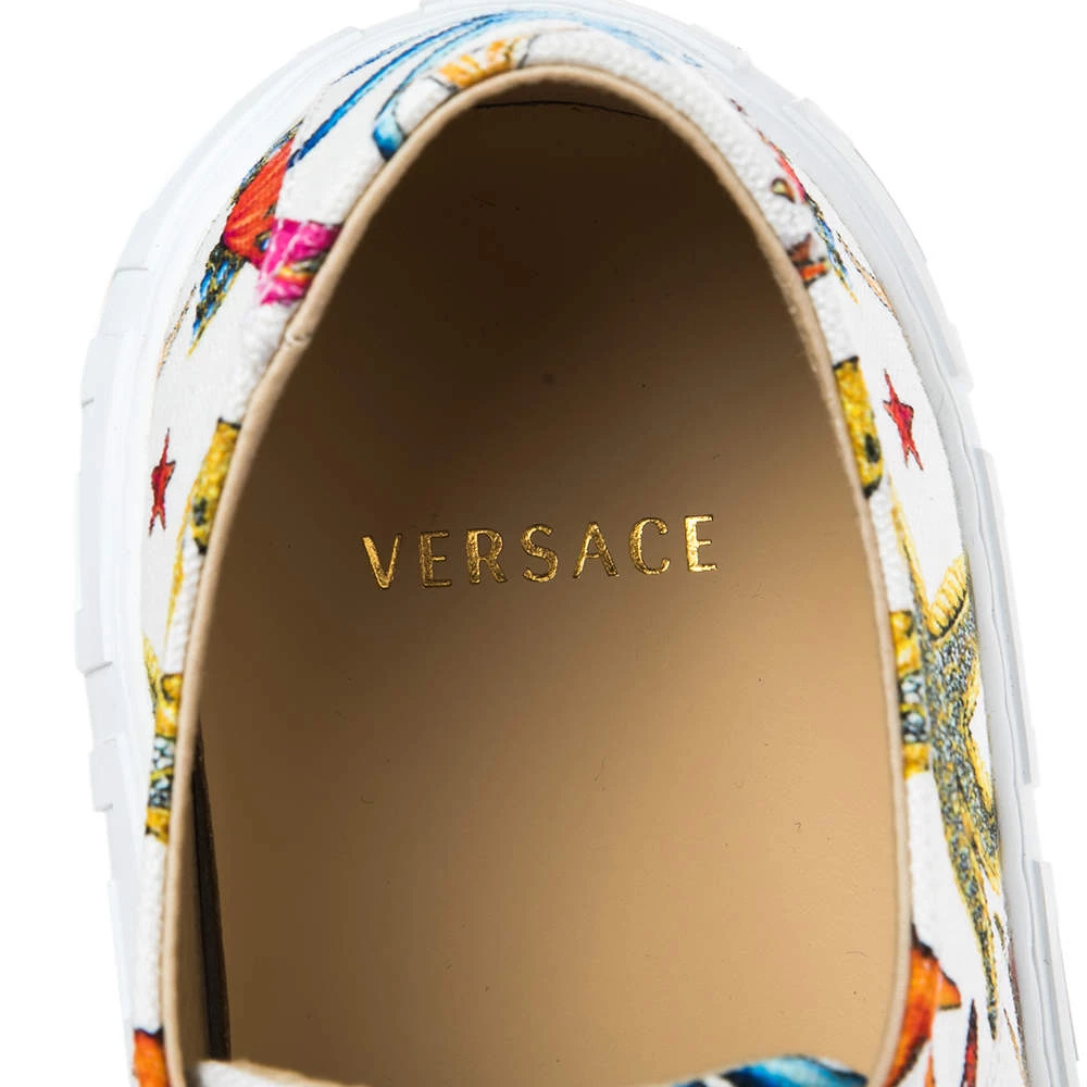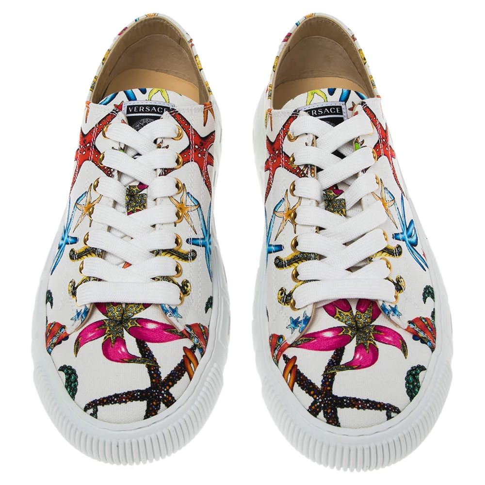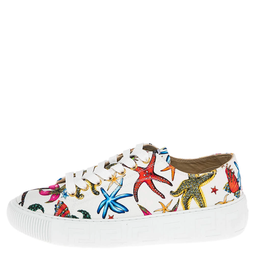 Designed to elevate your style quotient and give you comfort at the same time, Versace brings you these lovely sneakers. They’ve been crafted from canvas and designed with vibrant prints, lace ties, and rubber soles.