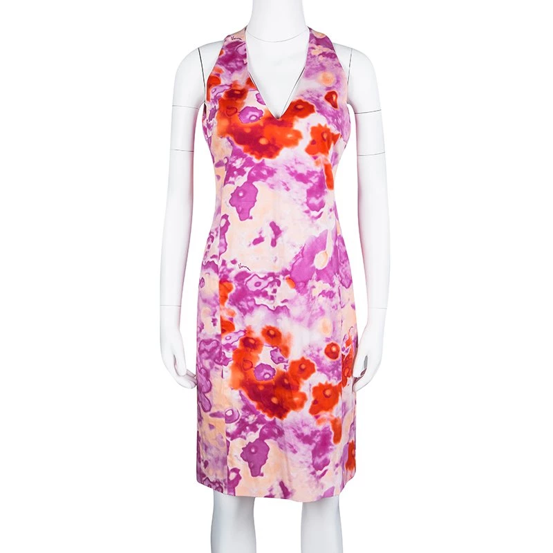 Made from cotton, Versace presents you this wonderful dress that comes flaunting floral prints, a v neck, and a back zipper. You can wear it with a dazzling pair of mules or pumps.