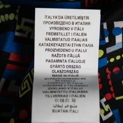 This blouse from Versace is made to offer a versatile style. It is stitched using multicolored La Greca printed silk fabric and has a crew neck and short sleeves. It comes with a buttoned closure. Sport a comoftable style as you wear this trendy top.