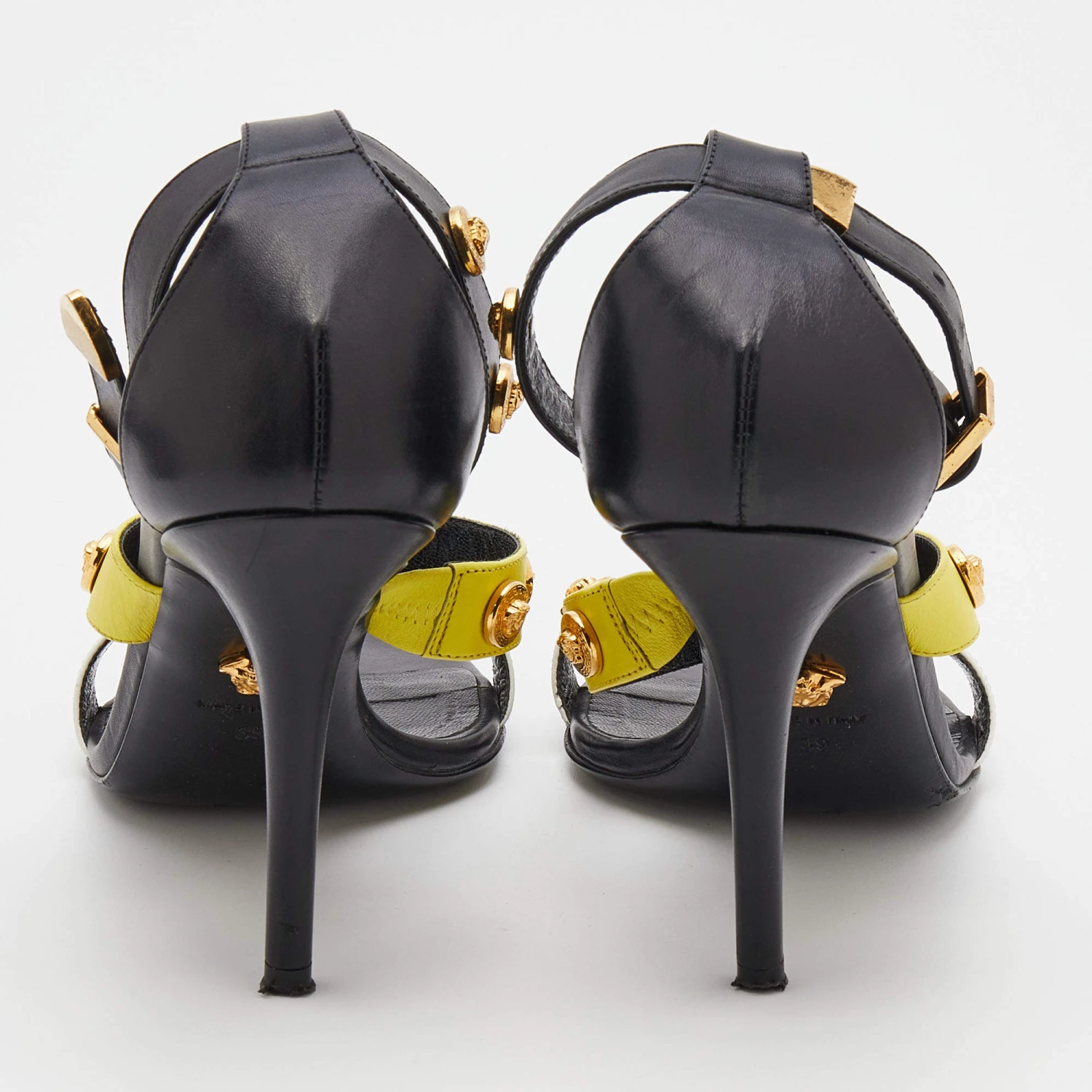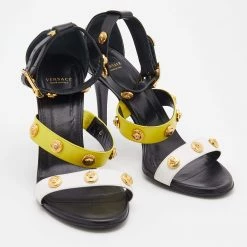 Versace brings to your closet these exquisite ankle strap sandals for those special occasions. Made using multicolored leather, they come in a strappy design showing Medusa-detailed studs and have 10 cm heels. Style them with short dresses for an elevated appeal.
