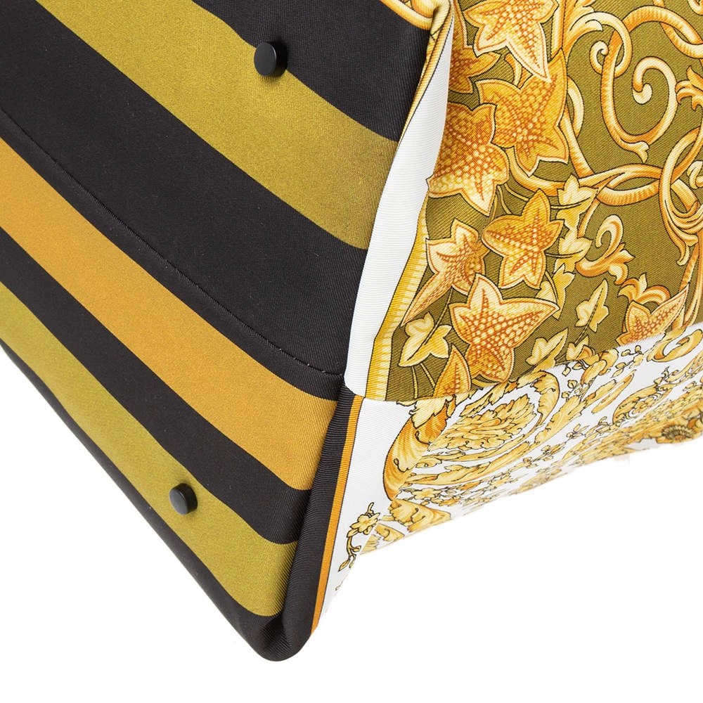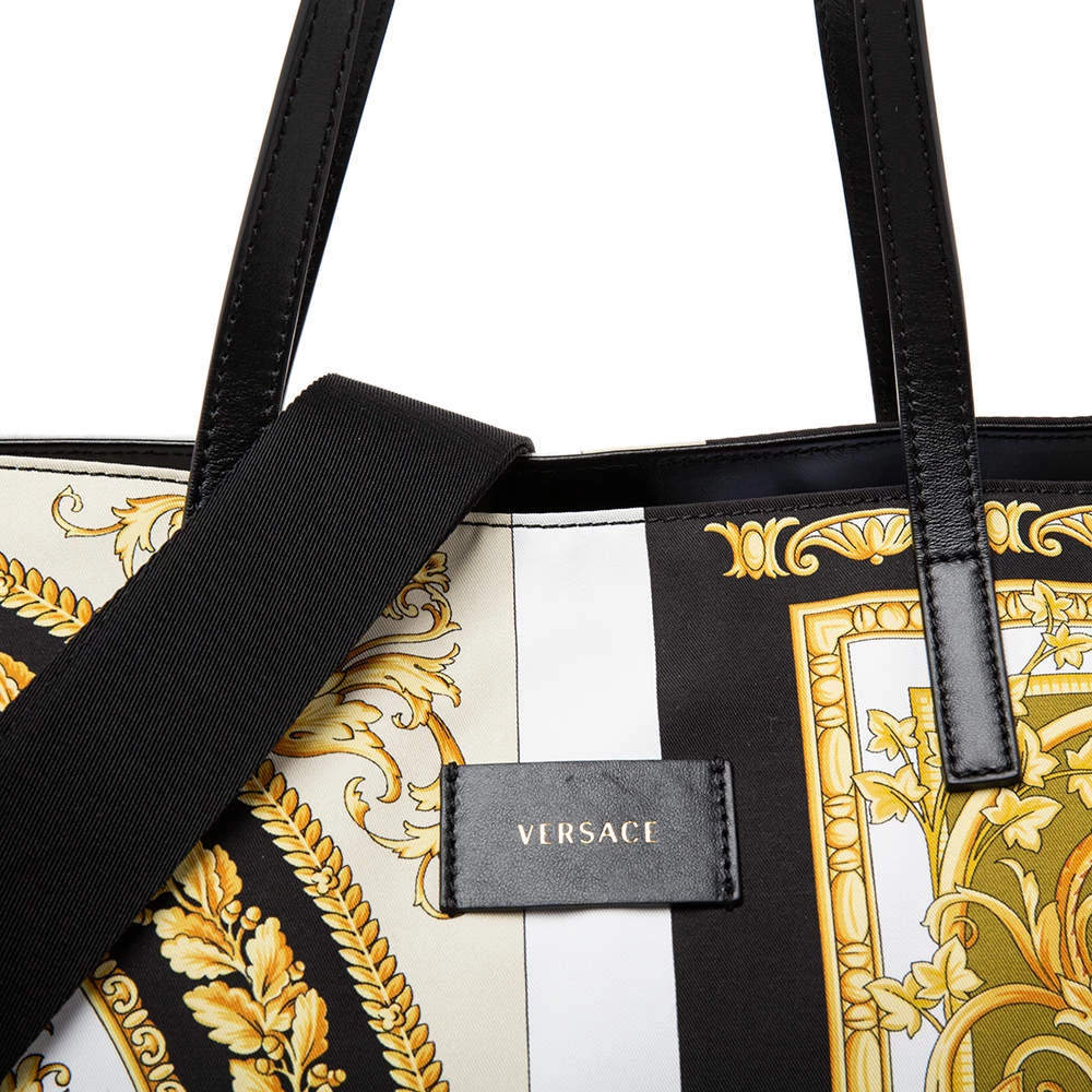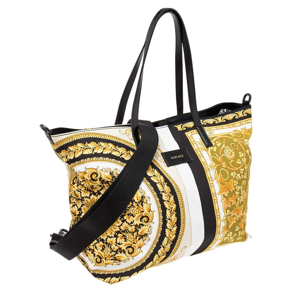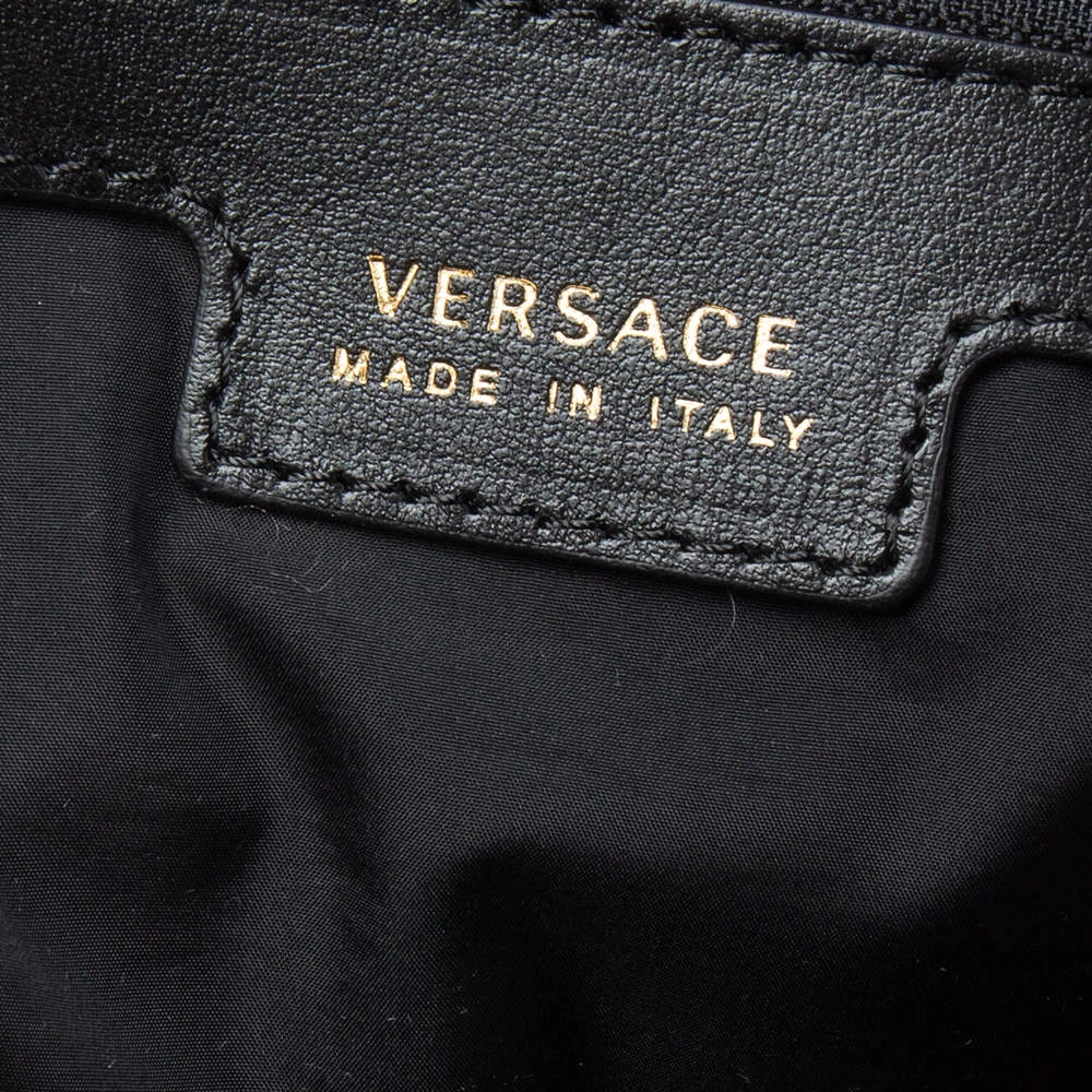 The excellently crafted handbag by Versace will make you stand apart from the crowd. This multi-colored bag has been crafted from printed nylon. It is styled with dual handles, zip closure, nylon-lined interior, gold-tone hardware, and brand logo detailing. It is stylish and functional for everyday use.