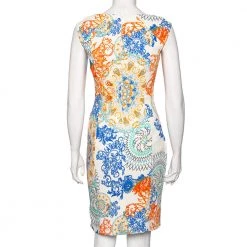 Flaunt your exceptional taste in fashion as you step out wearing this dress from the House of Versace. Designed using multicolored printed crepe fabric, this dress is accentuated with a sleeveless style and a midi length. It is equipped with a zip-type closure. Make an impressive style statement by wearing this!