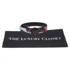 Statement belts are wardrobe essentials and we’ve got our eyes on this fabulous one from Versace! It has been crafted from multicolored printed nylon, is trimmed with leather, and glamorously styled with the signature Medusa buckle. It is equipped with a single loop that helps in seamlessly fastening the belt. You’ll love owning this creation!