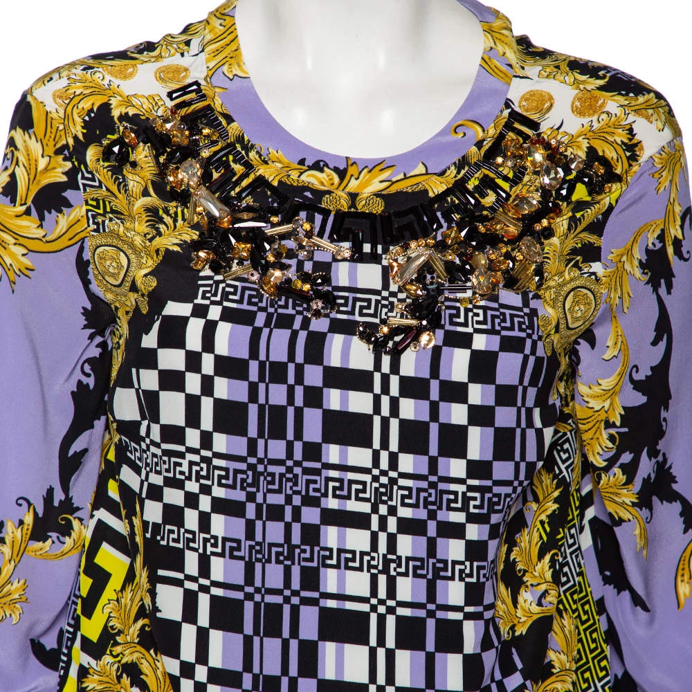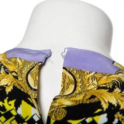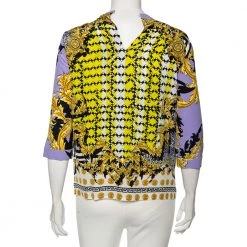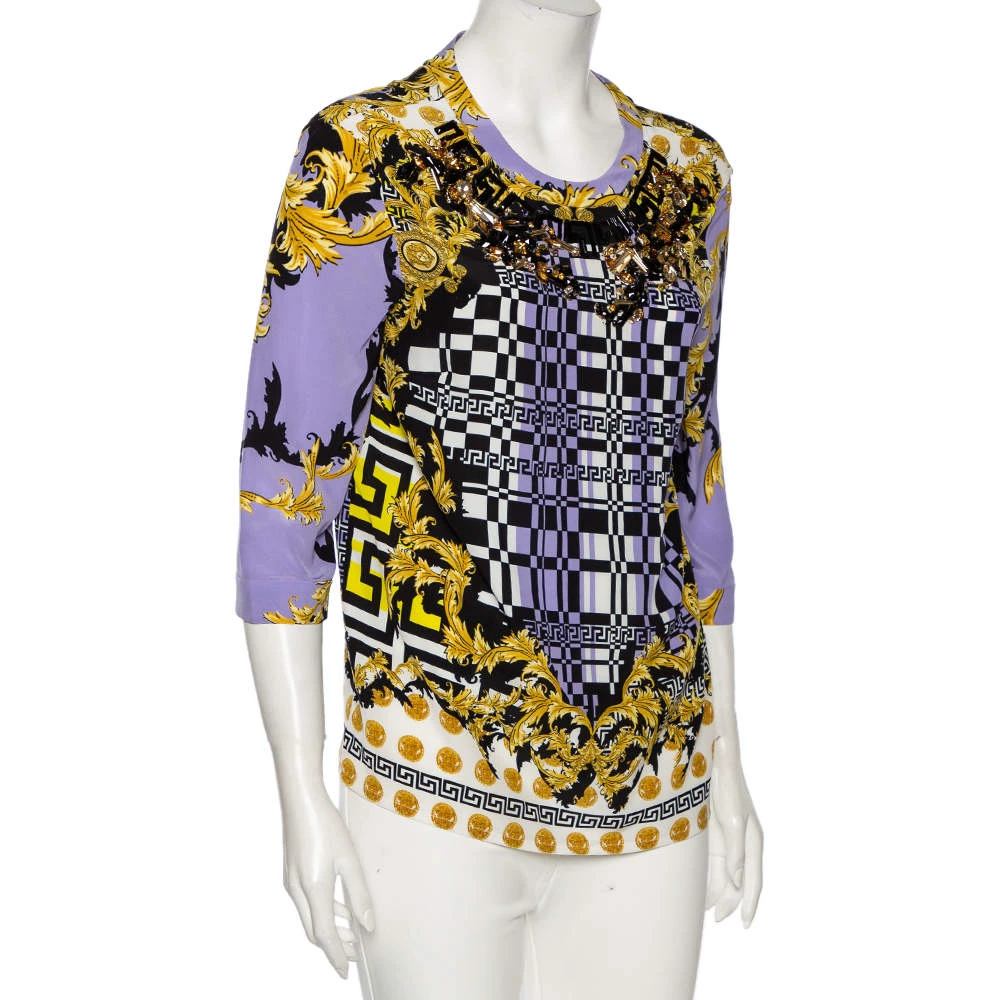 Versace is always the go-to option to pick unique, fancy pieces that grant your ensemble a magical touch. Flaunting a multicolored Baroque print on the silk fabric with embellishments near the neckline, this blouse from Versace is nothing less than a masterpiece. Complete your look by pairing it with jeans and flats.