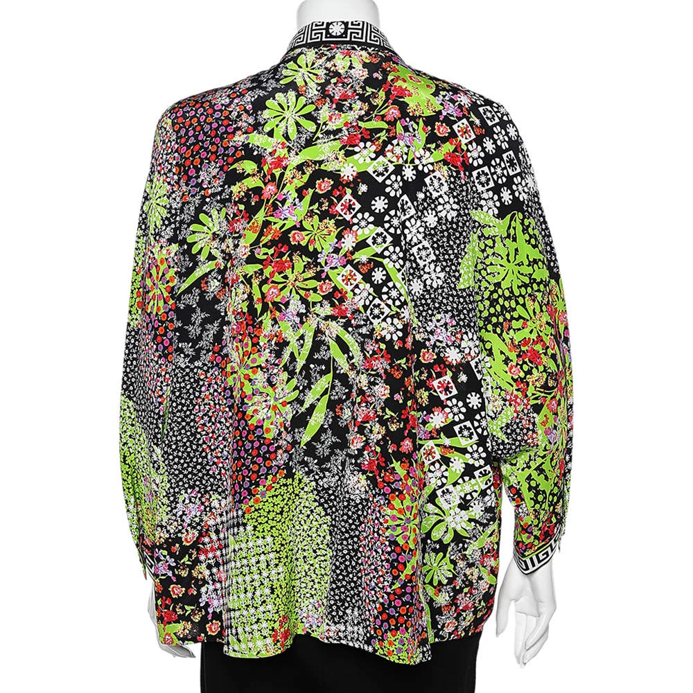 Known for its quirky and vibrant prints, this blouse from the House of Versace will bring its signature aesthetic to your wardrobe with complete ease. It is made from multicolored printed cotton and comes with a button-front feature, an oversized fit, and long sleeves.