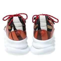 Versace’s Chain Reaction sneakers are for fashionable people like you. These ones are crafted from animal-printed calfhair and suede. They feature rubber panels through which the laces pass and high platforms soles with chain-like shape.