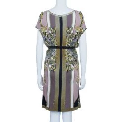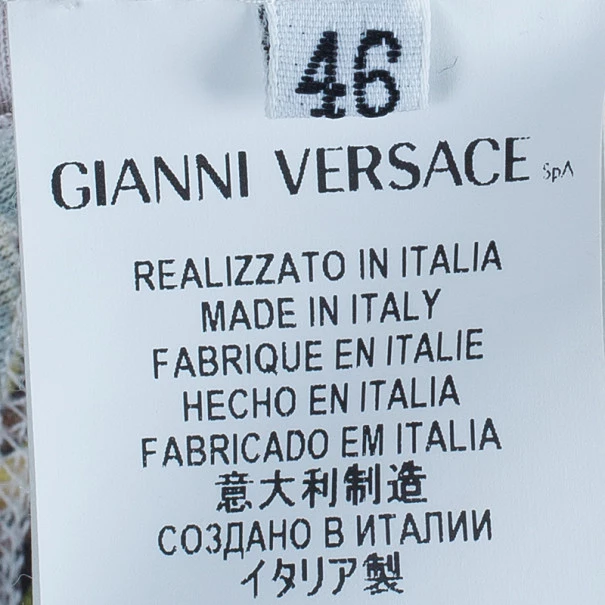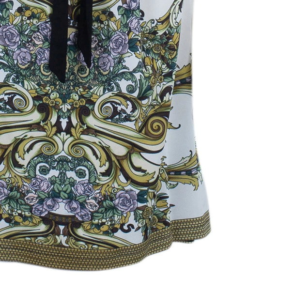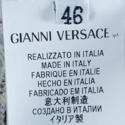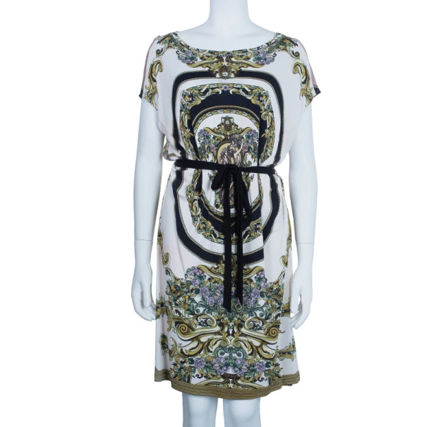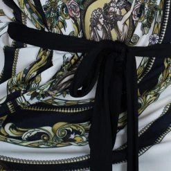 Take a trip to Versailles in this beautiful Versace dress. Made from viscose, its white color is outlined and designed with a beautiful print that takes us back to sublime French rooms. It features a boat neckline, dolman half sleeves, a black belt, and a knee-length hem.Original Retail Price: USÂ $1,650