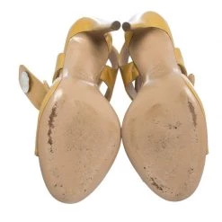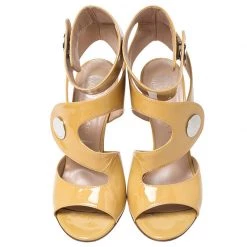 Bring in the subtle glamour to your outfits with this pair of sandals from Versace. They have been crafted from mustard colored patent leather and styled with chunky straps on the uppers. These peep-toe sandals come with ankle straps with snap button closures and 11 .5 cm heels. You’ll look your best when you team them up with your evening dresses.