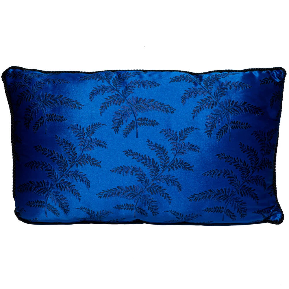A soft, well-made pillow by Versace to add a luxe element to your home. The pillow in navy blue has a rectangular shape and a spread of motifs all over.