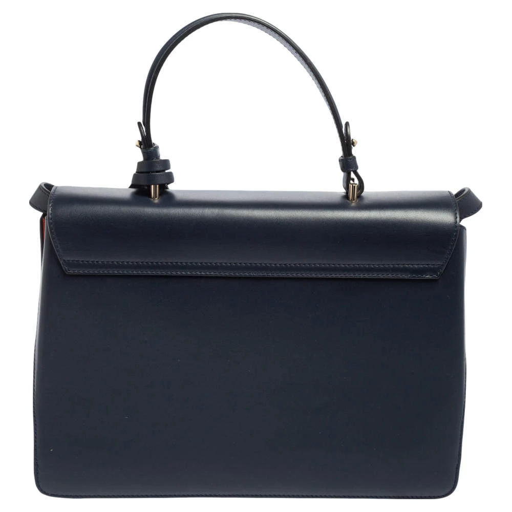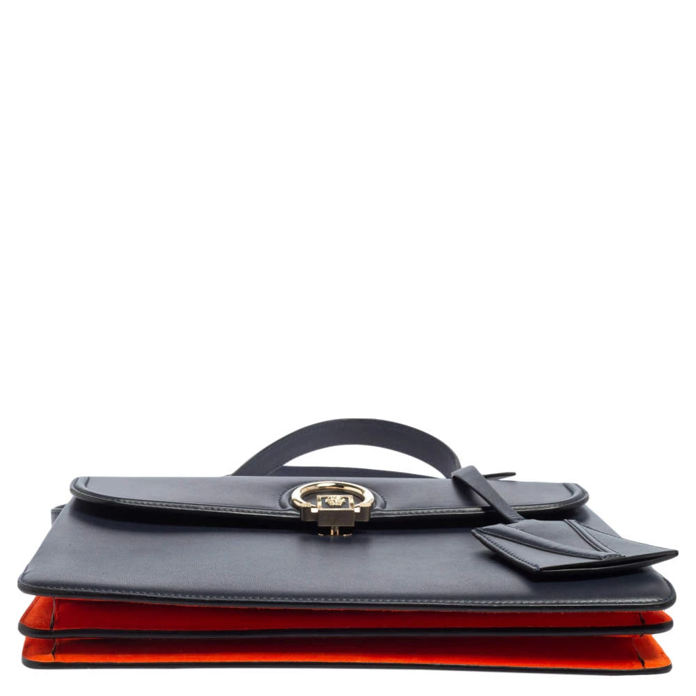 Versace Navy Blue/Orange Leather And Suede DV One Top Handle Bag For Women