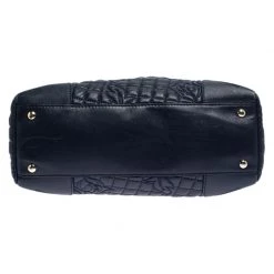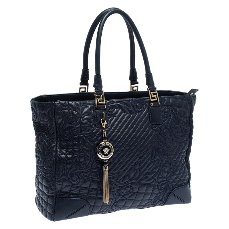 How gorgeous is this tote from Versace! Crafted from navy blue leather and gold-tone hardware, it carries an outstanding quilted design all over the exterior. It has a printed satin interior secured by zippers and it is held by two handles. The tasselled-Medusa charm uplifts its beauty and makes it a buy you will not regret.