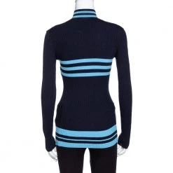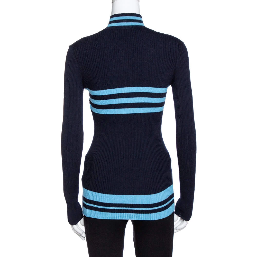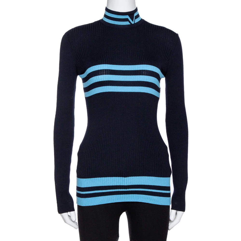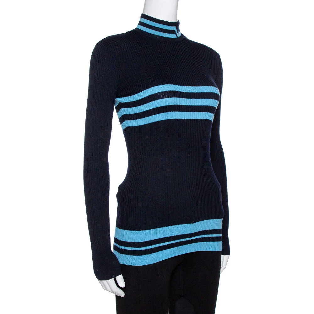 The striped pattern on Versace’s jumper is accompanied by a body-forming silhouette, so wear it solo or under an open jacket. It’s knitted from a lightweight wool blend and completed with long sleeves.