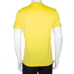 This t-shirt comes from the house of Versace. It is crafted from 100% cotton and flaunts a bright shade of yellow. It is styled with a round neckline, short sleeves and the signature Medusa motif the front. It is great for casual days and will pair well with jeans.