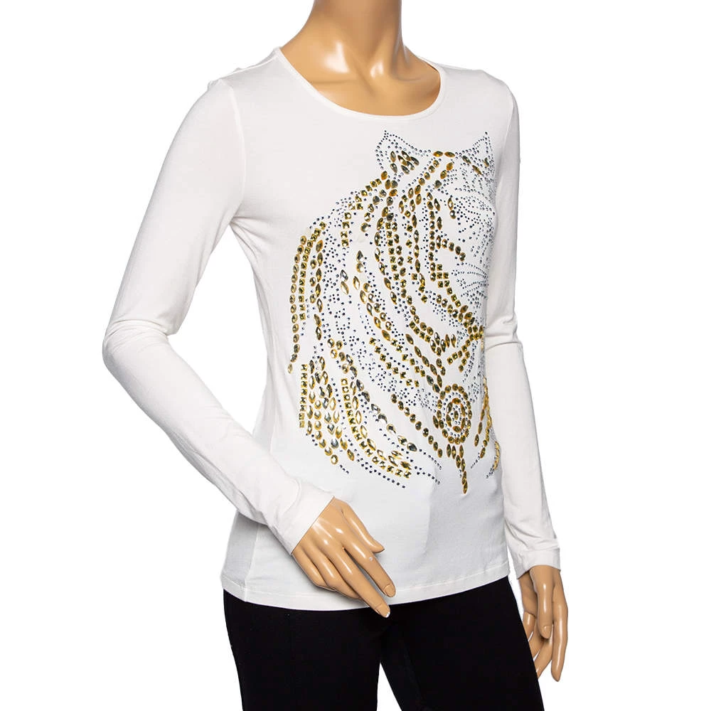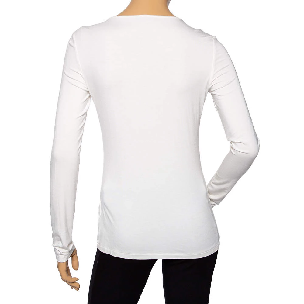 Get the style you desire as well as the comfort you need with this long-sleeve T-shirt from Versace. Made from quality materials, the off-white T-shirt is added with a simple neckline and embellishments on the front.