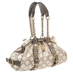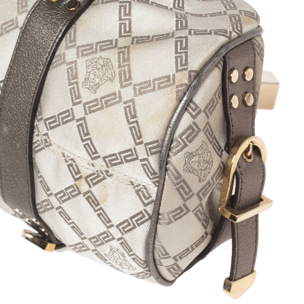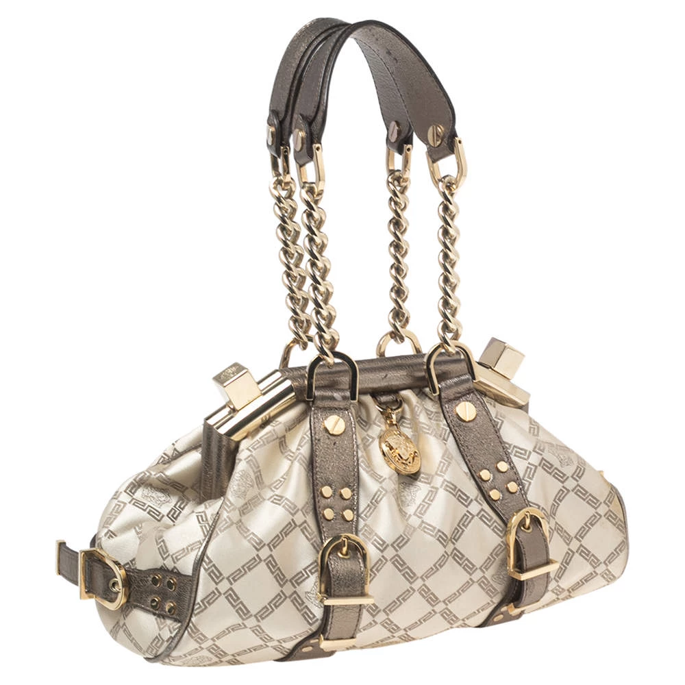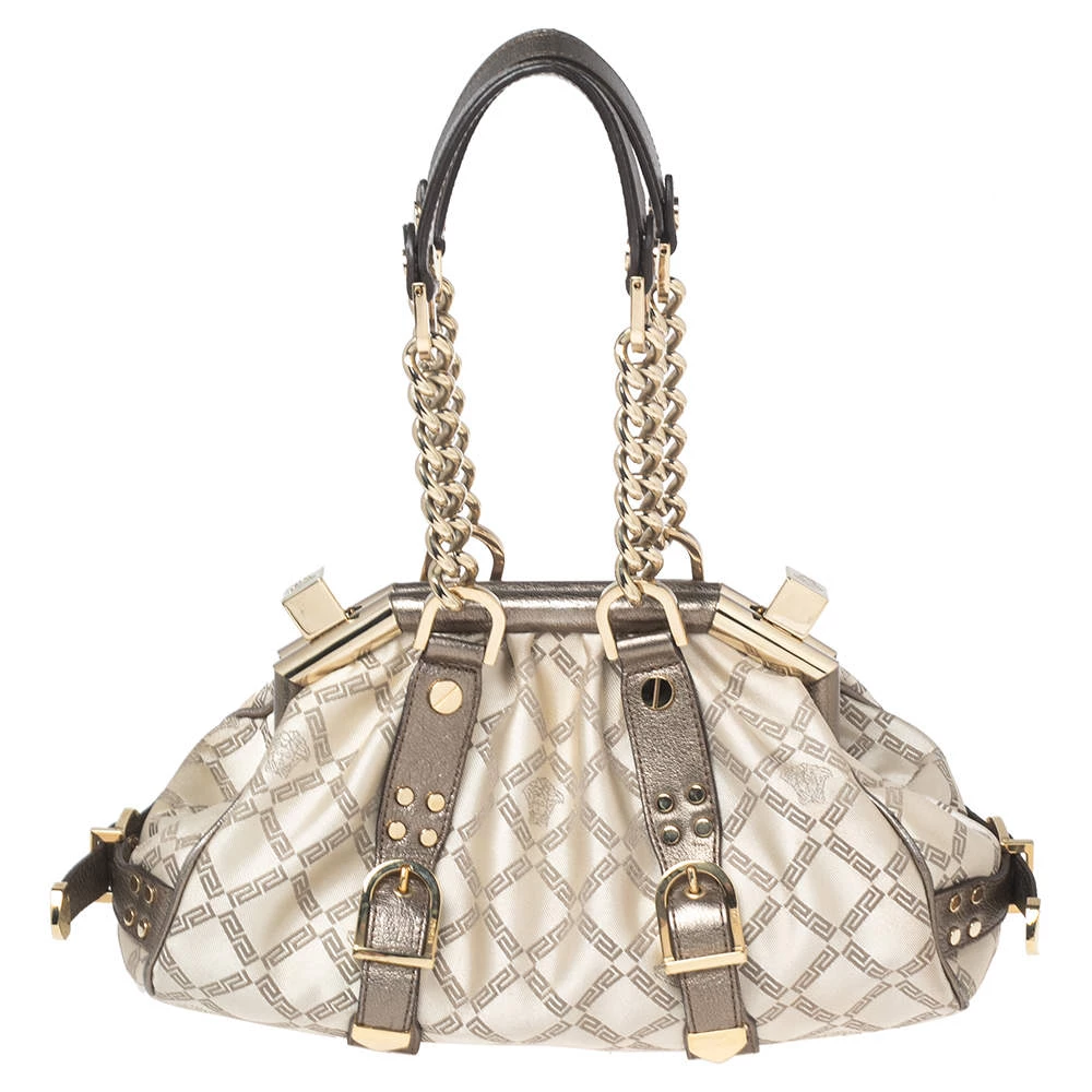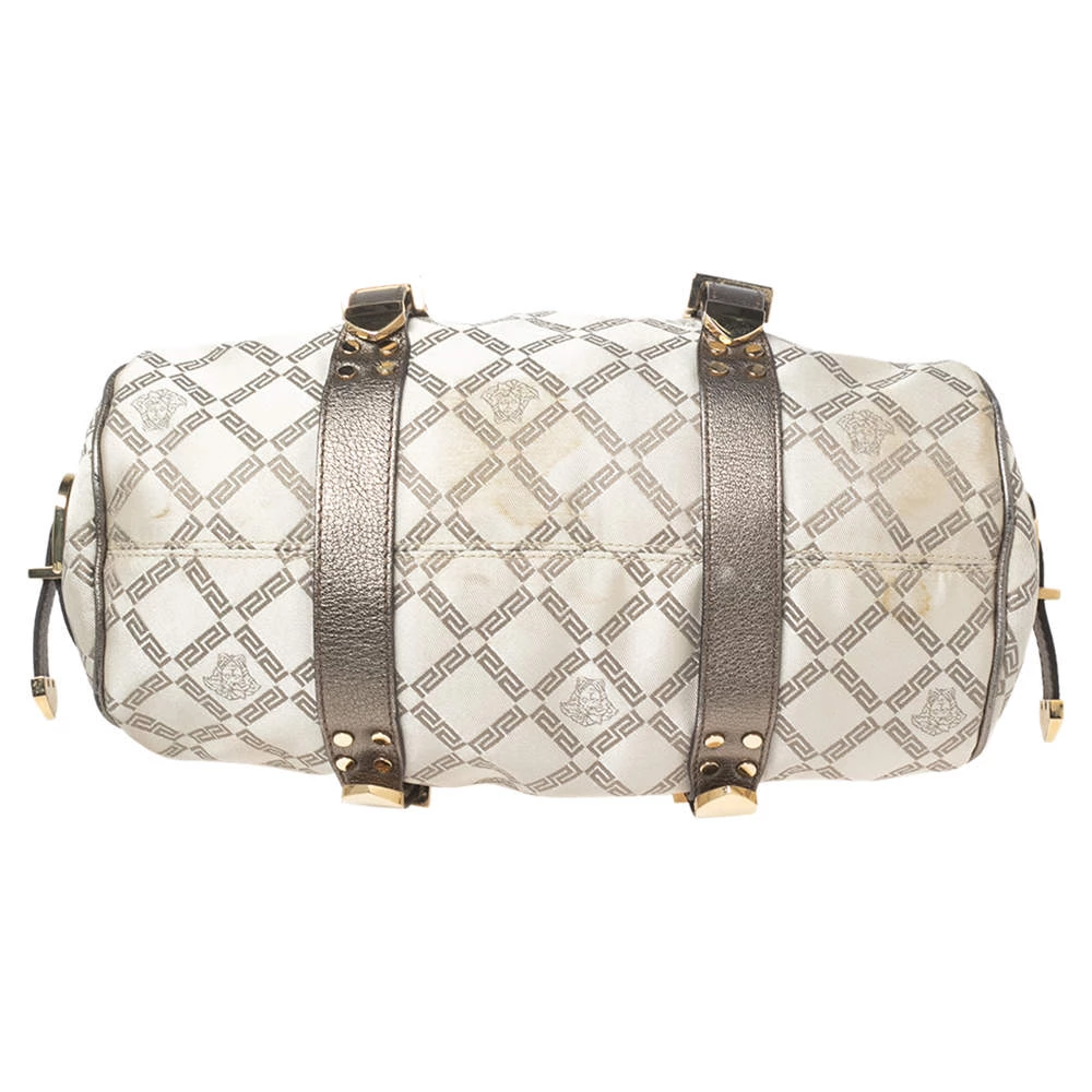 A gorgeous bag by Versace that is characterized by great craftsmanship and alluring signature prints all over. The satchel, made from signature fabric and leather, features two handles, the brand logo on the front and a spacious interior to house your necessities.