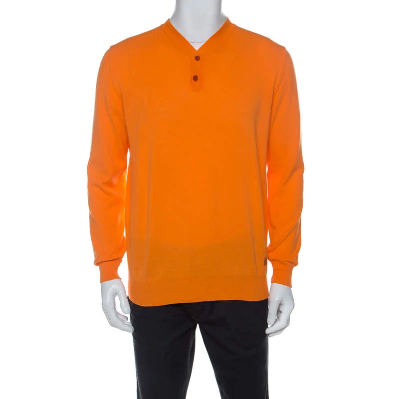 How smart is this sweater from Versace! The orange creation is made of cotton and features a collared neckline with buttons and long sleeves. It is sure to lend you a great fit and will look best with denims and tasselled loafers.