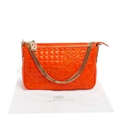 Now here’s a creation that is both stylish and functional! The House of Versace brings us this gorgeous Vanitas shoulder bag that exudes nothing but elegance. It is made from orange leather and flaunts embroidered detailing. This bag is equipped with a fabric-lined interior and gold-toned hardware.