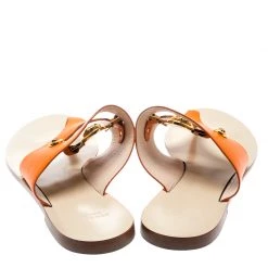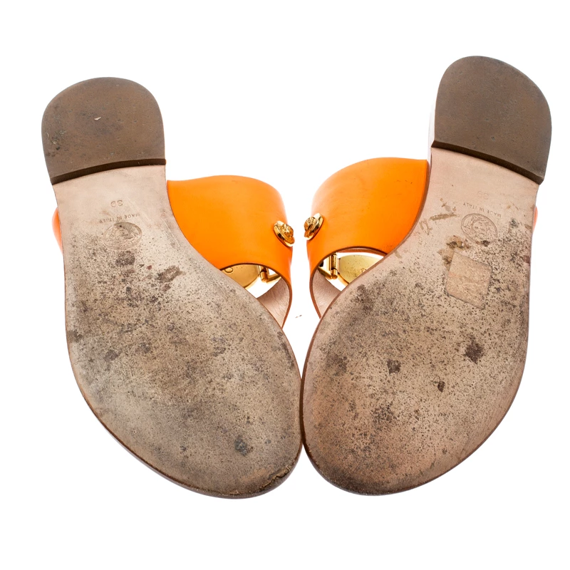 These premium quality leather flats will lend an elegant and poised look. Keep it light and simple with these uber comfortable leather sole thong sandals. The house of Versace brings you this impressive pair that complements your casual outfits. Keep your style as comfortable as it can be with this finely designed orange footwear.