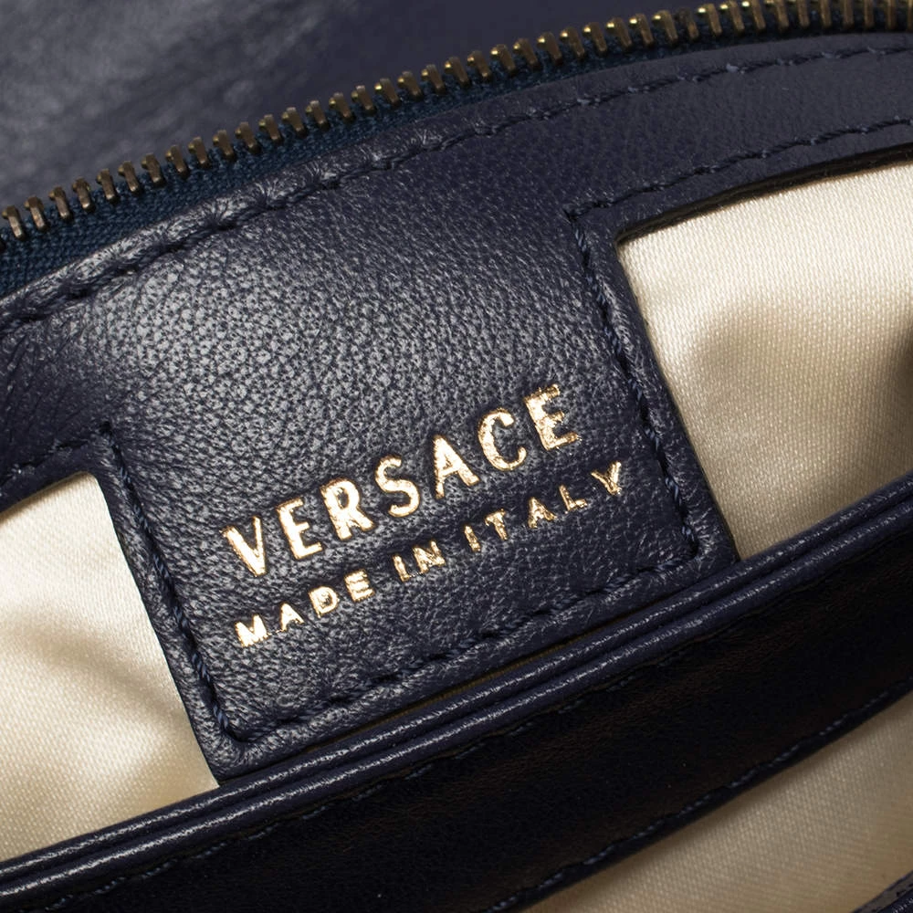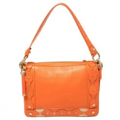 This orange shoulder bag from Versace has been designed to be a worthy style companion! Crafted from leather, the bag features a flap closure and gold-tone accents. It is equipped with a single handle and a satin-lined interior for you to carry your essentials in.