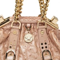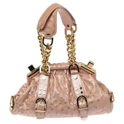Special days call for special bags, and Versace has just the one for you. This gorgeous bag, sewn to perfection, is covered in a peach shade. It is constructed very carefully using metal frames and ostrich leather, thus exhibiting a tactile feel. Inside the satin interior, there’s enough space to house the essentials you would require. Two shapely handles and metal feet are added as a finishing touch to this exceptional creation. NOTE: FOR UAE CUSTOMERS ONLY