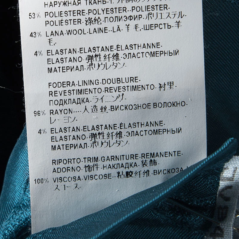 - Fabric: Shell: 53% Polyester , 43% Wool , 4% Elastane ; Trim: 100% Viscose ( Lining: 96% Rayon , 4% Elastane )