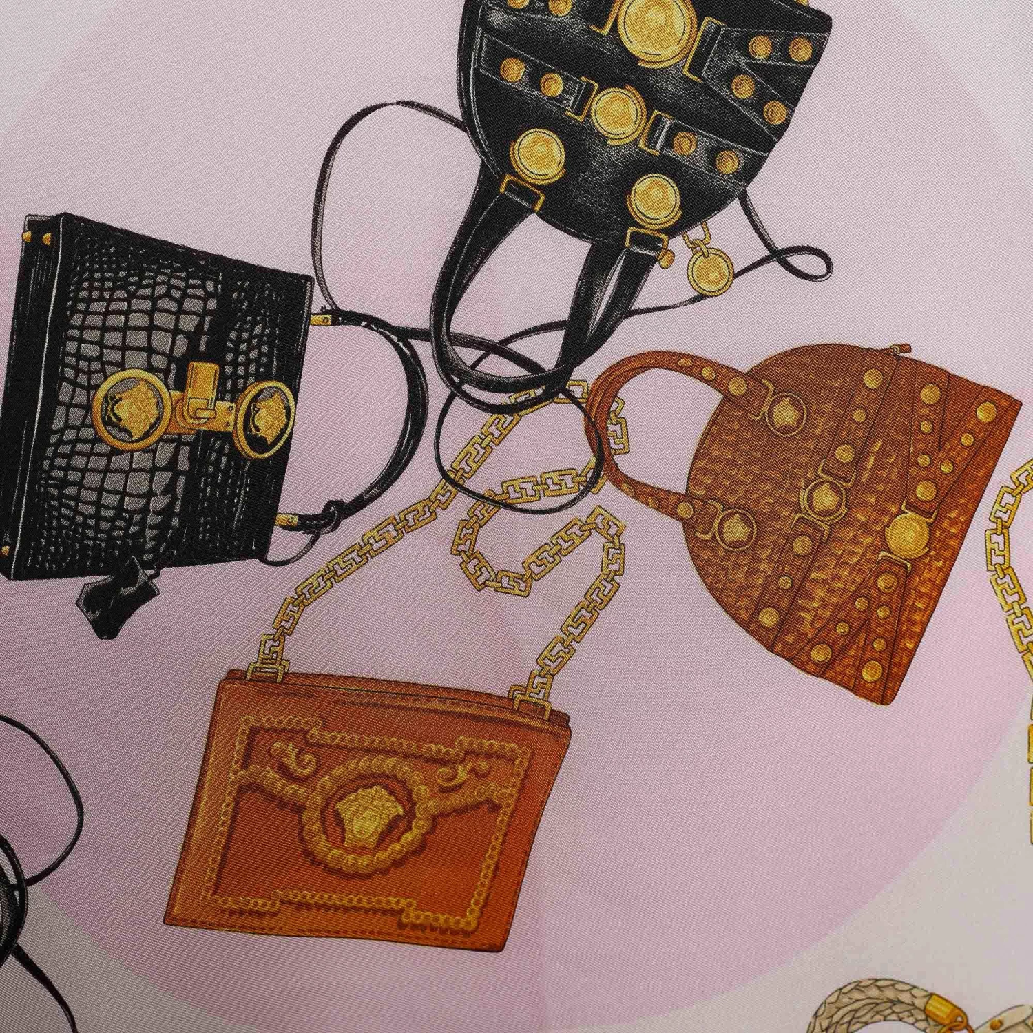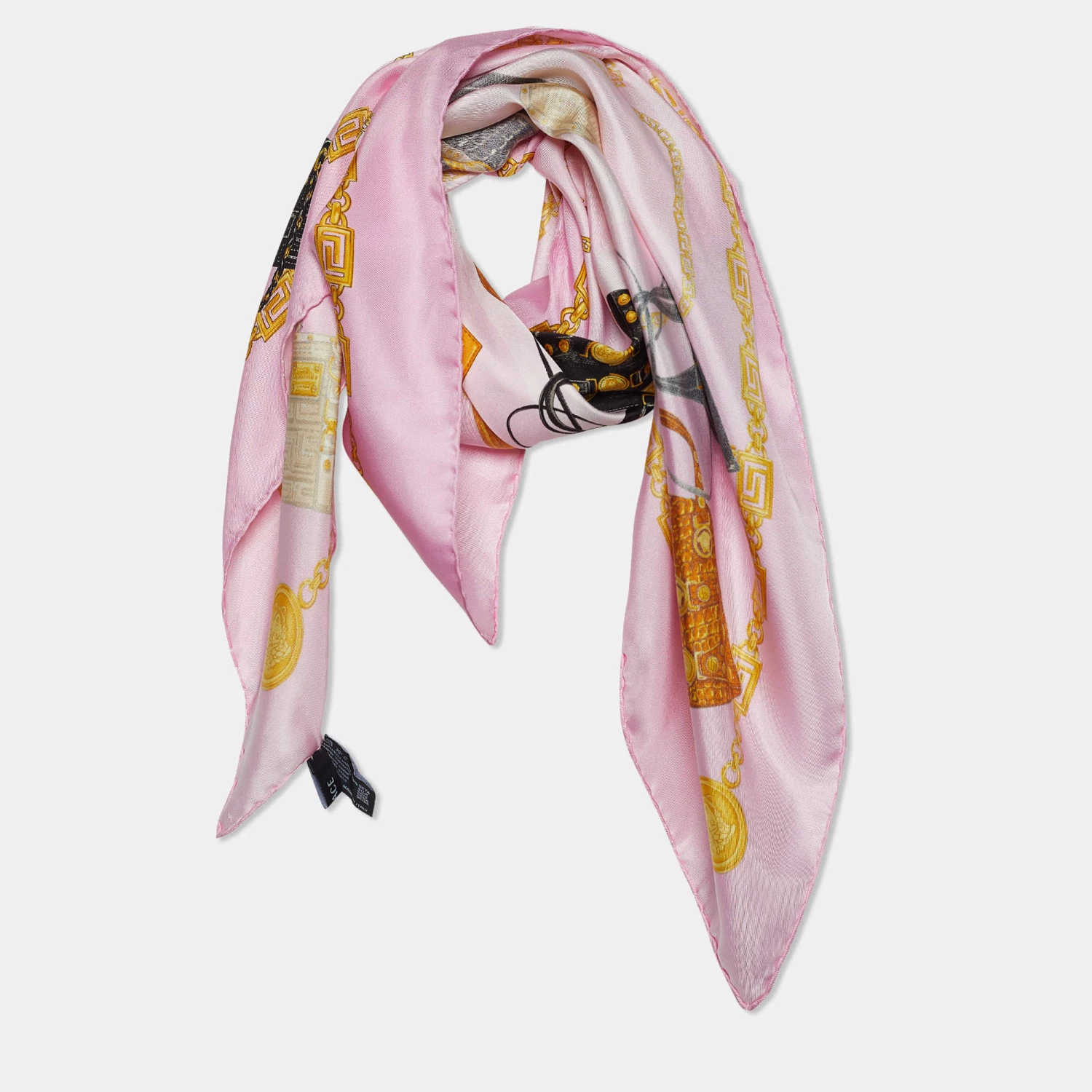 Classy and luxurious are some words that come to our minds when we think of Versace. The label brings you this scarf made from silk in a pink shade and has bags & chain prints laid on its surface.