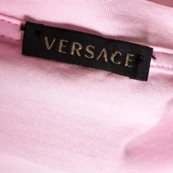 Characterized by the studded Medusa motif on the front outlined by floral appliques, this T-shirt by Versace is perfect for your casual style. It is pink in color and is designed with a crew neckline and short sleeves. Cut from cotton, grab this comfortable piece of clothing today!