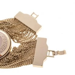 Accessorize your bold looks with this engaging and striking bracelet from Versace. The smart piece is crafted from gold-tone metal and features the brand’s signature Medusa medallion charm held by multiple slender chainlinks. It comes with a clasp fastening. Wear this exquisite creation with your evening ensemble.