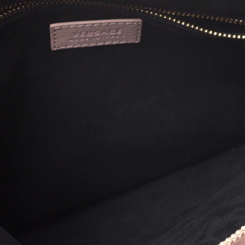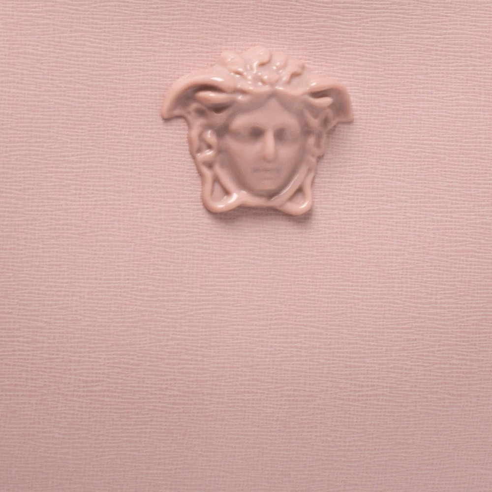 This Versace clutch is great for special occasions and will make sure you stand out from the crowds. Crafted in Italy, it is made from quality leather and comes in a lovely shade of pink. It is styled with the iconic Medusa motif on the front that adds interest, gold-tone hardware and a zip closure that leads to a fabric interior. It is finished with a wristlet strap.