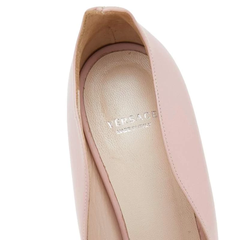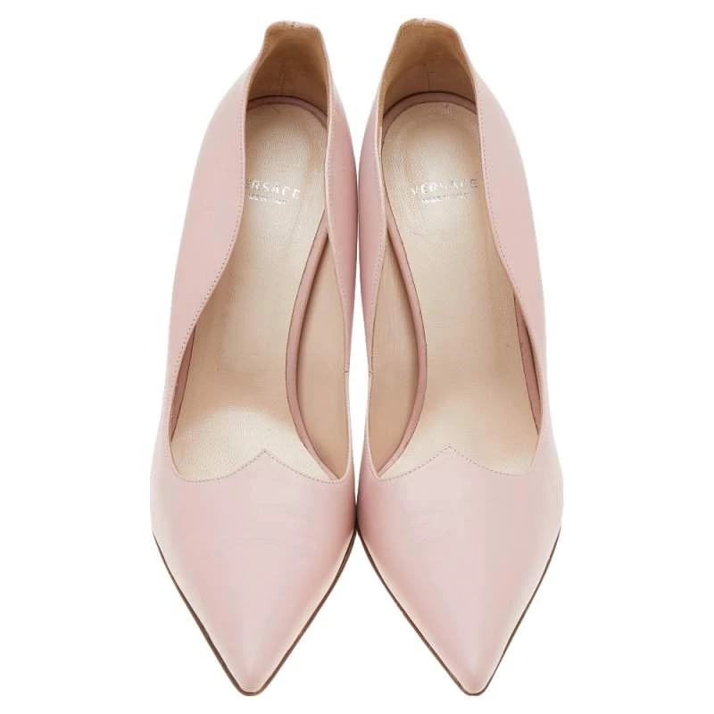 This Versace pair of pumps is a perfect example of fashion with function. Covered from leather in a pink hue, it features silver-tone hardware and pointed toes. Balanced on 12cm heels, it will definitely lift your fashion spirits.