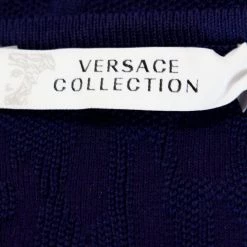 Pair this top from Versace with your favourite accessories to create a classic style statement. Crafted from quality materials, this sleeveless top comes in a lovely shade of purple. It comes with a wide neck, fitted silhouette, a belt detail that sits at the waist and a jacquard pattern that adds interest.