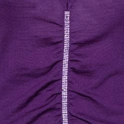 Update your winter wardrobe with this classy sweater from Versace. Cut from purple knit fabric, this top is adorned with crystal embellishments and ruched formations. It has long sleeves and a V-shaped neckline. Make a luxe fashion statement as you wear this gorgeous creation.