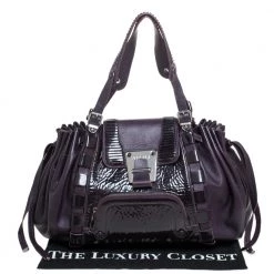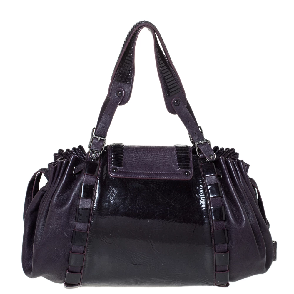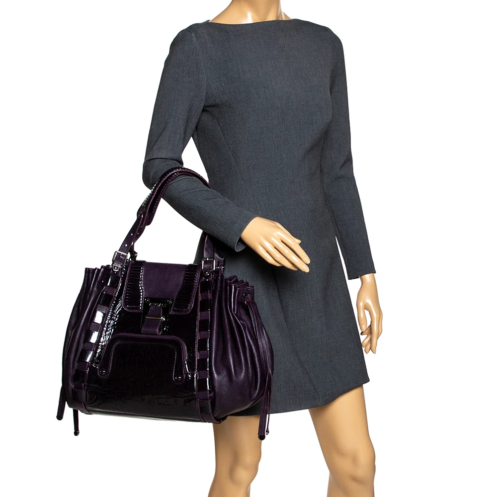Masterfully stitched in patent leather, this bag can effortlessly hold more than just your essentials. The satin and leather interior is well-sized and the handles are easy to hold. This gorgeous shoulder bag by Versace will assist you on any day.