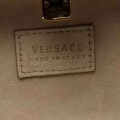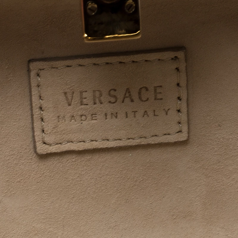 Grab this feminine Box clutch by Versace before it’s too late! It is crafted from python leather and features a delicate gold-tone chain link. Secured with an embellished lock closure it has a suede lined interior that will hold all your party essentials.