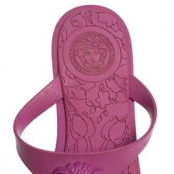 These Versace thong flats are made from rubber just so you can wear them at pools, beaches, or lounge around in them. They come in a purple shade and feature the label’s Medusa logo on the vamps for a signature finish.