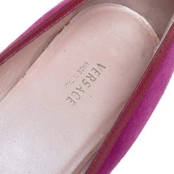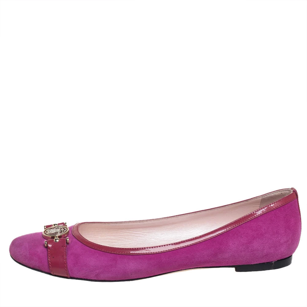 These purple ballerina flats from Versace are perfect for a casual day out or brunch with friends. They have been crafted from suede and styled with round toes and signature accents on the uppers. They are complete with leather-lined insoles.