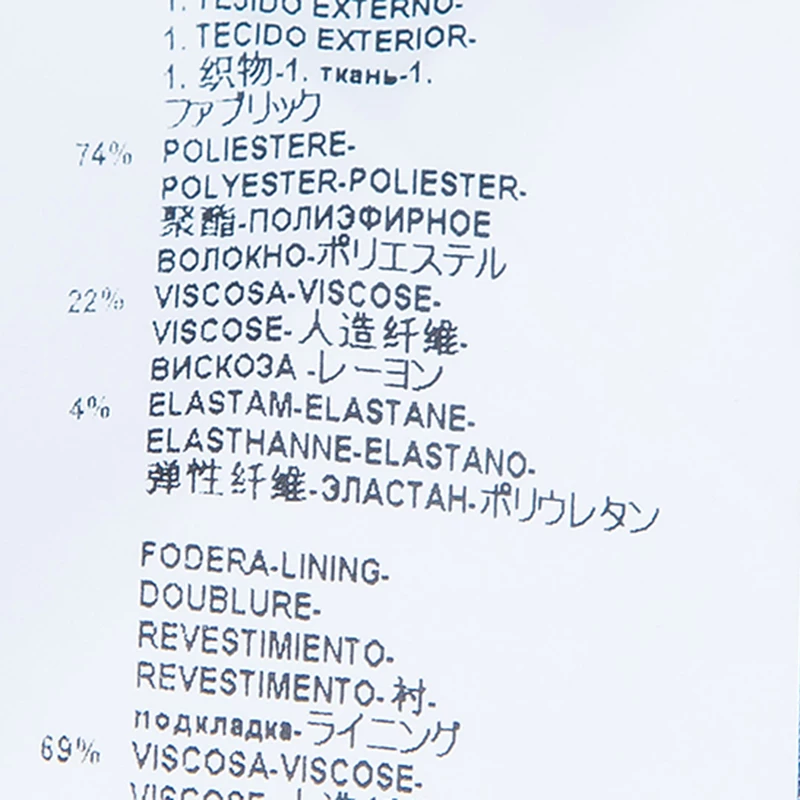 - Fabric: 74% Polyester, 22% Viscose, 4% Elastane