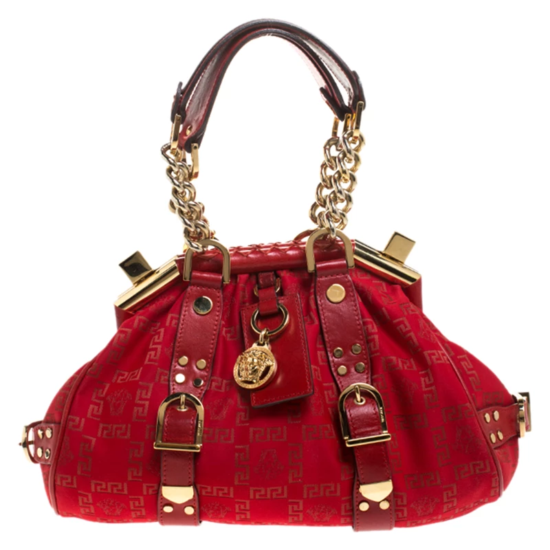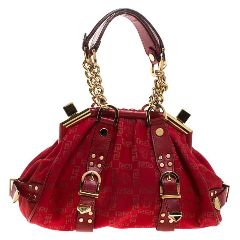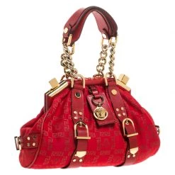 This Versace handbag is an example of the brand’s design aesthetic and quality craftsmanship. This Madonna Boston bag has been crafted in Italy and made from the brand’s signature fabric and comes in a lovely shade of red. It is styled with dual handles, leather trims, gold-tone hardware accents, satin interior with a slip pocket carrying the brand label. Grab this striking bag now!