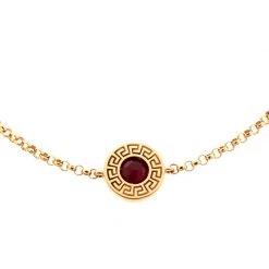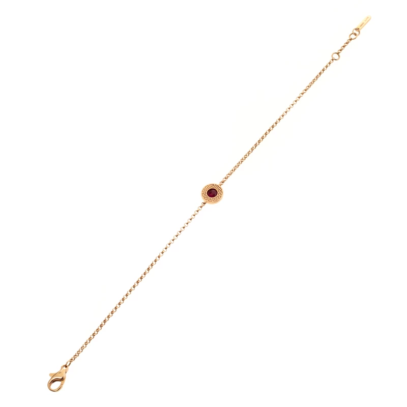 Artfully made from 18k rose gold, this flawless Soft bracelet by Versace can be your next prized possession. Featuring a gorgeous signature-engraved coin charm enhanced with a little red gemstone, the design has been finished with a lobster clasp. The piece is simple and grand.